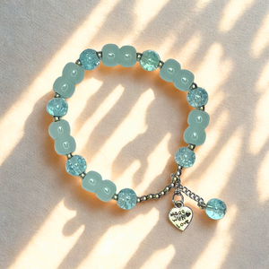 Capture the serenity of a clear blue sky with our Aura Bloom Bracelet – Crystal Sky with Love Charm. This soothing piece features frosted pastel beads paired with shimmering aquamarine-like crystals, finished with a delicate "Made with Love" charm. Perfect for elevating a minimalist outfit with a pop of calm energy.