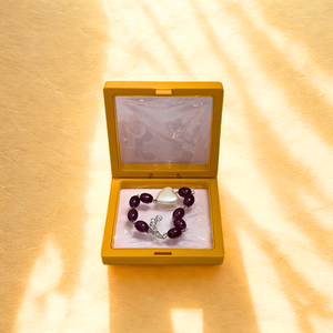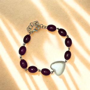 Bold meets romantic in the Aura Bloom Bracelet – Maroon Beads with Silver Heart. Featuring deep maroon oval beads linked delicately with silver-toned connectors, this bracelet is finished with a striking silver heart charm. Perfect for gifting or keeping close to your own heart.