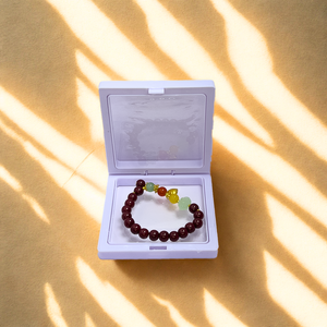 Channel good vibes and graceful charm with our Fortune Charm Beaded Bracelet. Deep maroon beads are accented with vibrant green, golden, and milky white stones—featuring an ornate gold-toned fortune charm for added cultural flair. A perfect harmony of tradition and trend.