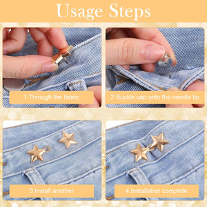 Metallic Star Jean Waist Tightener Pins - Pack Of 4 Pairs