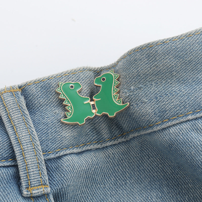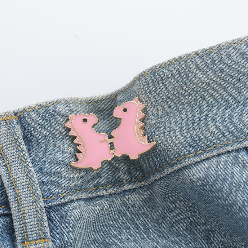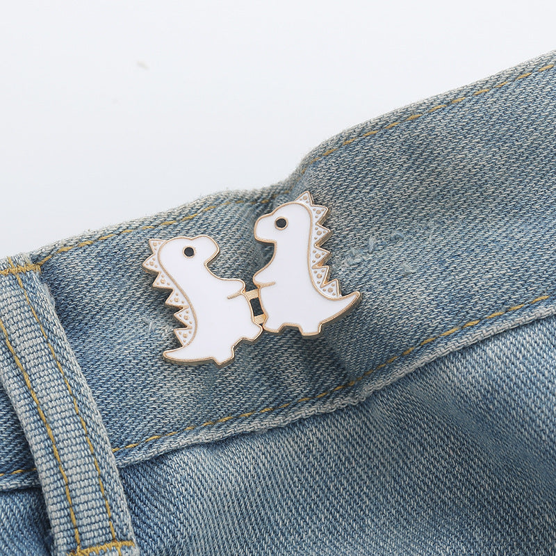 Add charm and a dash of whimsy to your outfits with these Dino shaped jean tightener pins. Crafted with a glossy enamel finish and a central pearl detail, these pins combine functionality with fashion — perfect for adjusting waist size without sewing or altering your jeans.