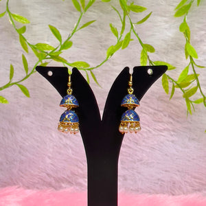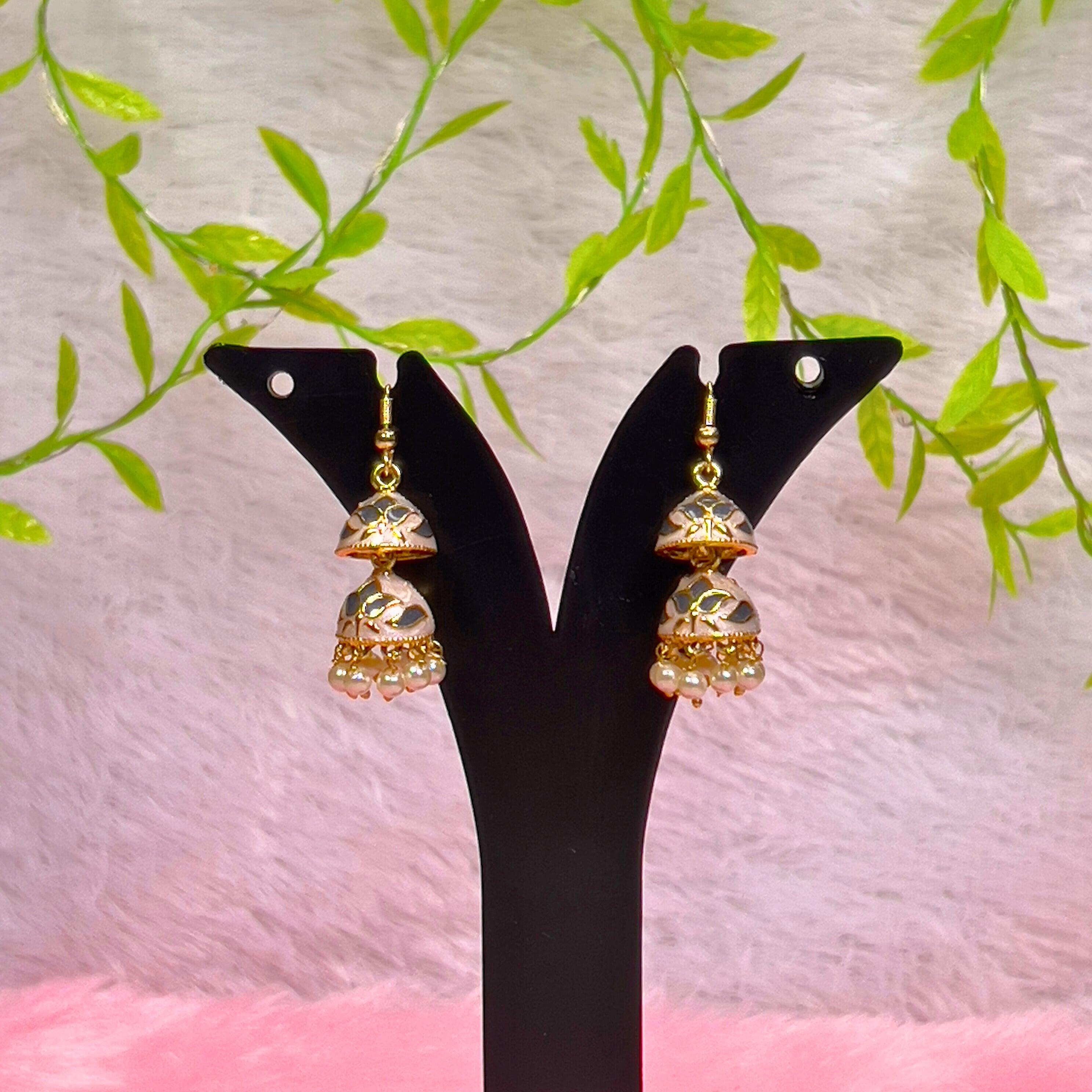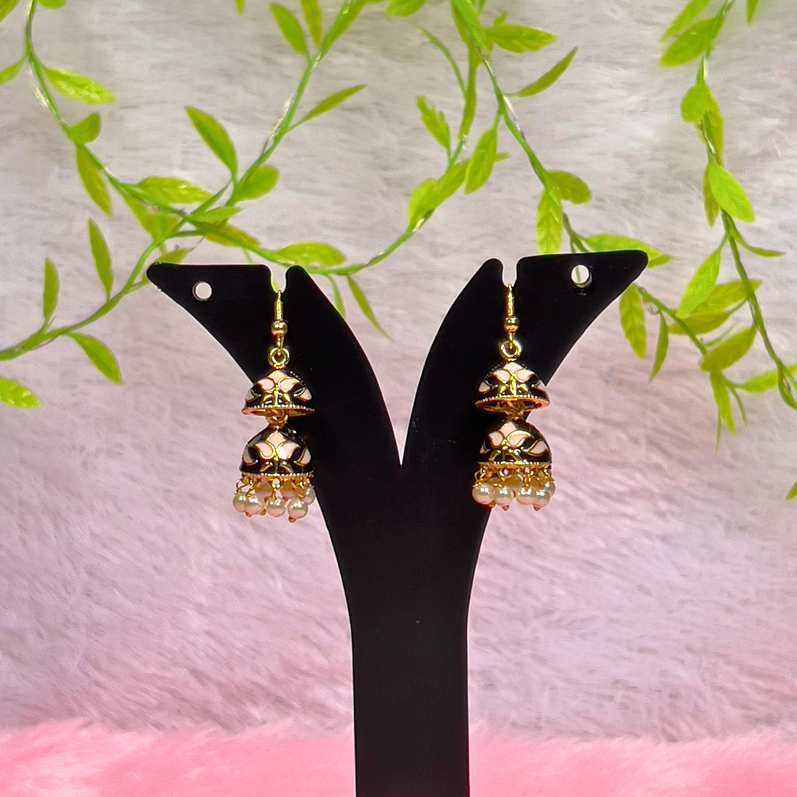 These Royal Desi Jhumkas are the perfect blend of tradition and glam. With intricate Meenakari enamel work and mini pearl detailing, these double-layer dome earrings showcase vibrant colors and elegant gold lining. Whether it's a festive celebration or a cultural gathering, these jhumkas bring unmatched charm to your ensemble.